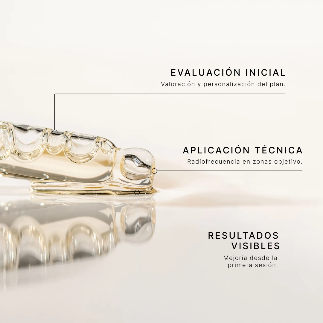 Desde la primera sesión, notarás una piel más luminosa, tersa y rejuvenecida. El efecto lifting sin cirugía es uno de los resultados más valorados.