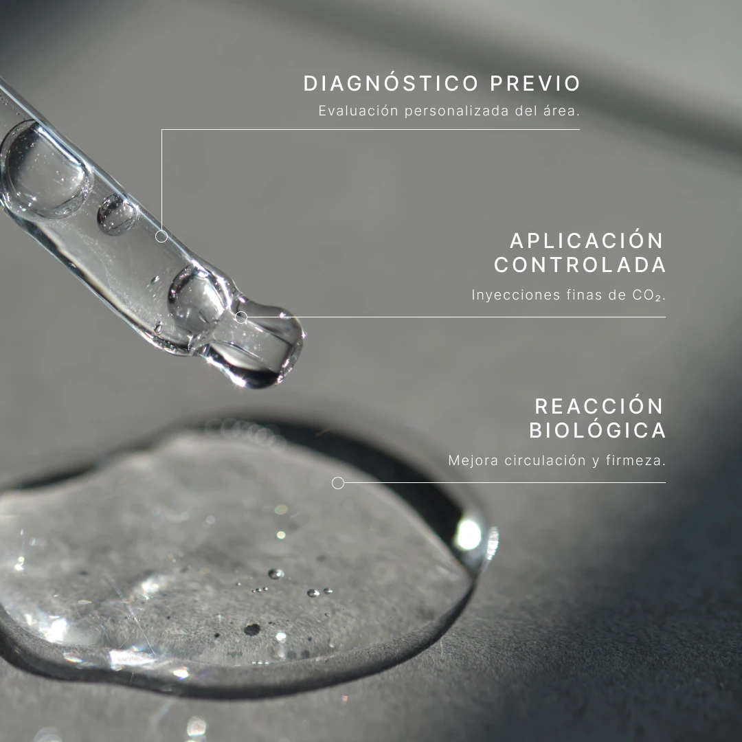 Durante la sesión, que dura entre 30 y 60 minutos, el CO₂ se dispersa rápidamente, generando una vasodilatación que activa la circulación sanguínea y linfática. Este proceso facilita la eliminación de toxinas, mejora la oxigenación de los tejidos y contribuye a la reducción del volumen y la firmeza de la piel.