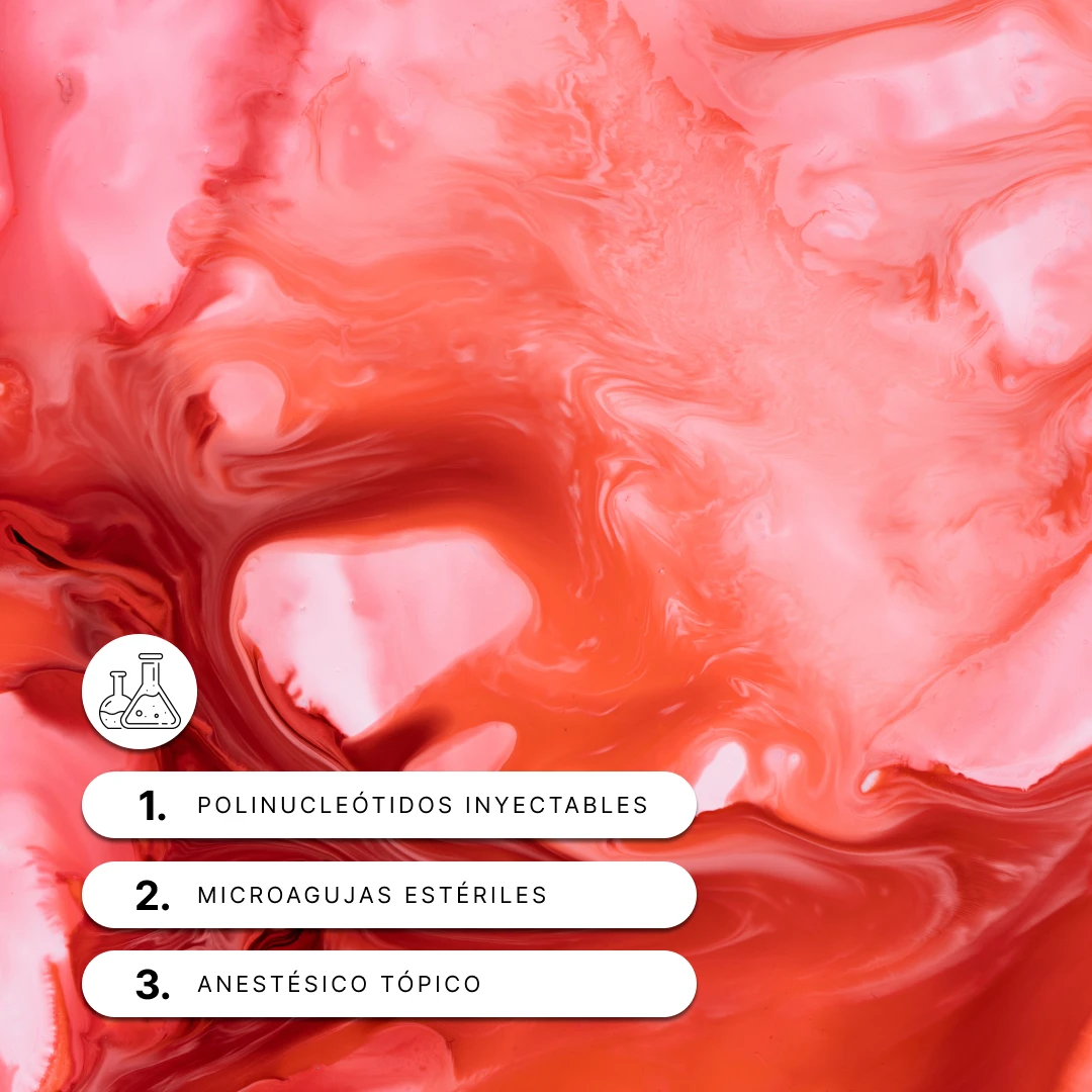 Durante la sesión, se aplican microinyecciones de polinucleótidos en la zona deseada. La técnica es mínimamente invasiva y prácticamente indolora, aunque puede aplicarse anestesia tópica si se desea. La duración de cada sesión es de aproximadamente 20 a 30 minutos, y tras la aplicación, es posible retomar las actividades cotidianas casi de inmediato, siguiendo algunas recomendaciones simples de cuidado.